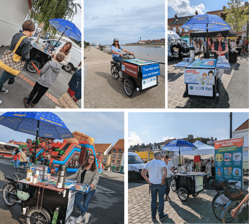 Pour la deuxième année consécutive, le triporteur de la CLI de Gravelines, en partenariat avec le SPPPI Côte d’Opale Flandre, a sillonné les routes des villes et des campagnes pour aller à la rencontre des habitants sur les marchés locaux.